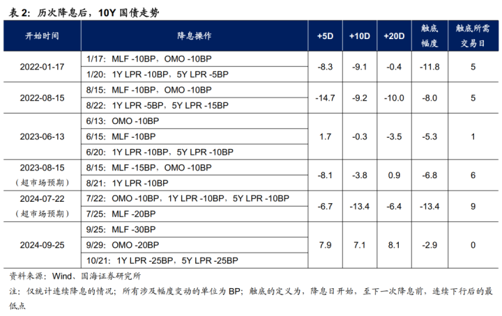 (4)如果降息落地,之后的追涨空间也相对有限,反而会成为阶段性止盈的窗口。复盘近年来的历次降息,在前期降息交易较为充分的情况下,降息落地后,收益率往往出现迅速回调。特别是近年来随着债市交易速度、反应速度提升,利率债的追涨窗口期有缩短的趋势,有时甚至仅有1个交易日、或者降息当天就已经充分消化降息利多因素。只有在央行超市场预期降息时,收益率才会有相对更大幅度的下行,例如2023年8月和2024年7月。