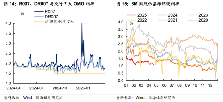 本周流动性略有收紧。R007收于1.71%,较上周增加1BP,DR007收于1.69%,较上周增加4BP。6个月国股转贴利率收于1.08%,较上周减少12BP。